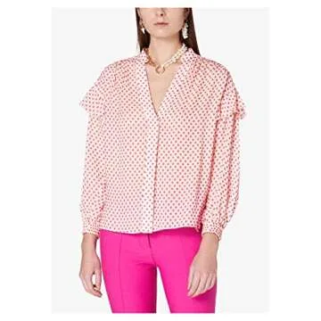 Derek Lam 10 Crosby Womens Kaena Ruffle Blouse Ecru-Red 4