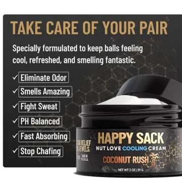 Derm Dude Happy Sack Ball Deodorant & Anti Chafing Cream for Men | Formulated With All-Natural DeoPlex for Odor Control | Aluminum Free Nut Love Cooling Cream - Coconut Rush Scent, 2 oz (1 Pack)