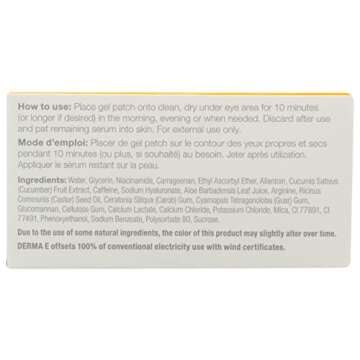 Derma E Vitamin C Bright Eyes Hydro Gel Patches, Natural, Cruelty Free, 3 Ounce (Pack of 1)