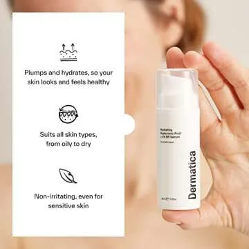 Show more Experience the transformative power of Dermatica's Hyaluronic Acid Serum with Vitamin B5, a lightweight and nourishing serum designed to combat the signs of aging and deliver unparalleled hydration. With a carefully curated blend of Hydrolyzed Hyaluronic Acid, Glycerin, Niacinamide, and Vitamin B5, this serum not only hydrates and plumps your skin but also works to reduce the appearance of fine lines and strengthen your skin’s barrier. Its potent formula is perfect for all skin types, ensuring that those with oily, combination, or dry skin can enjoy its remarkable benefits.