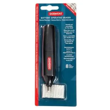 The Derwent eraser includes 8 long-lasting erasers that can be easily removed and replaced, providing you with the flexibility to tackle both small and large erasing tasks. Powered by 2 AAA batteries (not included), its high-speed motor offers unparalleled performance, giving you the ability to erase with speed and precision. Whether you’re working with colored pencils, graphite, or charcoal, this eraser delivers consistent results without the abrasive effects of regular erasers.