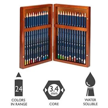 Derwent Colored Pencils, WaterColour, Water Color Pencils, Drawing, Art, Gift Set Wooden Box, 24 Count (2300152)