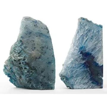 DesertUSA Unique Blue Agate Geode Bookends - A Natural Touch for Book Lovers