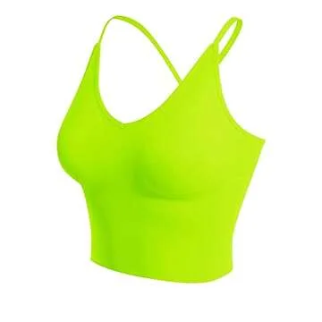 Design by Olivia Women's Casual Seamless Padded Workout Sports Bra Cami Cropped Yoga Tank Top with Adjustable Straps Neon Green SM
