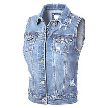 Design by Olivia Women's Classic Sleeveless Distressed Button Down Jean Denim Jacket Vest Light Denim L