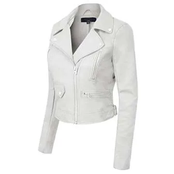 Design by Olivia Women's Long Sleeve Zipper Closure Moto Biker Faux Leather Jacket White S