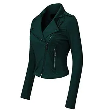 Design by Olivia Women's Slim Fit Long Sleeve Zip-up Moto Jacket Hunter Green L