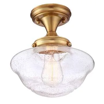 Design House 588491 Schoolhouse Semi Flush Mount Modern Vintage Farmhouse Indoor Dimmable Ceiling Light with Clear Seedy Glass for Entryway Hallway Kitchen Hallway Bedroom, Satin Gold