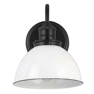 Show moreIlluminate your space with the Design House Savannah Wall Light, a perfect blend of rustic charm and modern functionality. Crafted with a striking matte black finish and a classic white metal shade accented by black trim, this wall light effortlessly enhances the ambiance of any area. Both stylish and practical, its farmhouse-inspired design makes it an exceptional choice for hallways, entryways, kitchens, and more, promising to transform your home into a welcoming haven. This versatile piece not only adds to the aesthetic but also provides essential lighting, making it a staple in your interior decor.