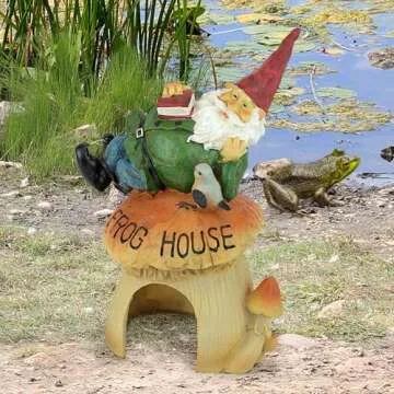 Design Toscano QM20860 Garden Gnome Statue - Garden Gnome Frog House - Toad House - Fairy Garden - Gnome Village,Multicolored