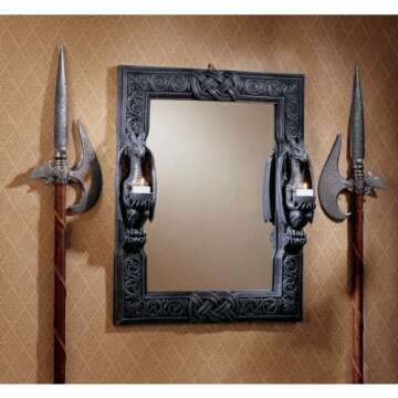 What sets the Design Toscano Thorne Twin Sentinal Dragons Wall Mirror apart from other fantasy decor items is its unparalleled quality and attention to detail. While many similar products are made from lower-quality materials, this mirror is crafted from high-grade designer resin, offering durability and an aesthetic that others simply can’t match. Additionally, the dual candle holders uniquely position this mirror at the intersection of functionality and fantasy, perfect for creating a mesmerizing atmosphere anywhere.