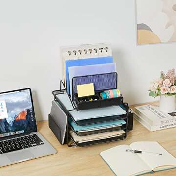 The DESIGNA Stackable Mesh Desk Organizer is more than just a functional item; it’s a transformation tool for your workspace. Imagine a desk devoid of chaos, where each item has its place, and your productivity soars as a result. The organizer's sleek black finish complements any office decor, creating a professional atmosphere while alleviating stress. Enjoy the peace of mind brought by an orderly environment, allowing you to focus on what really matters.