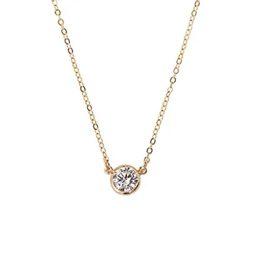 The necklace is made of 14K gold-filled chain and features a bezel cubic zirconia pendant.