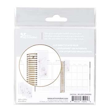Show more Introducing the Designer Accessories by Erin Condren - Snap-in Bookmarks - Wildflowers, 3 Pack! These exquisite bookmarks are more than just a tool; they are a vibrant addition to any planner, notebook, or journal, meticulously crafted to combine both beauty and functionality. Measuring 1.625" by 3.375", these bookmarks fit seamlessly within the pages of all Erin Condren coiled and binder planners, ensuring that you can easily keep your place without the bulk of traditional bookmarks. The beautiful wildflower design adds a splash of color and style, making them not only practical but also a delightful visual element in your daily organization.
