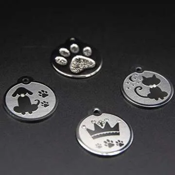 Show more Introducing our Designer Custom Engraved Stainless Steel Pet ID Tags, a perfect blend of style, durability, and personalization for your beloved pets. These high-quality pet tags feature genuine Swarovski Crystals adorning the front, adding a touch of elegance that stands out in any situation. Crafted from 100% stainless steel, these tags are designed to withstand the wear and tear of even the most spirited dogs and cats, making them an ideal choice for active pets. With a size of approximately 1.44 inches by 1.24 inches, these tags are both lightweight and stylish, ensuring your pet looks great while staying safe.