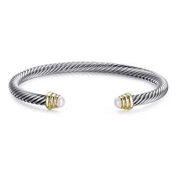 Designer Inspired Vintage Cable Bracelet Composite Shell Pearl Cuff Bracelet