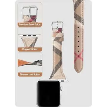 Show more Introducing the exquisite and stylish luxury watch band designed specifically for today's modern woman. This brand, 【Be Slimmer】, prioritizes the needs and preferences of female users, offering a watch band that effortlessly combines functionality with aesthetics. The unique Classic Plaid print redefines elegance, providing a fashionable touch that suits any occasion, whether it's a casual day out or a formal event. With its meticulous attention to detail and thoughtful design, this watch band stands out in the fashion industry.