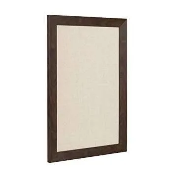DesignOvation Beatrice Framed Linen Fabric Pinboard, 18x27, Walnut Brown