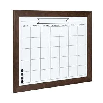 DesignOvation Beatrice Framed Magnetic Dry Erase Monthly Calendar, 23x29, Walnut Brown