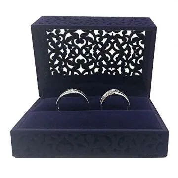 DesignSter Ring Bearer Box, Double Ring Box, Hollow Velvet Ring Box, Ring Holder For Wedding Ceremony (Dark Blue)