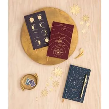 Designworks Ink Cloth Hardcover Journal Notebook with Lined Pages and Ribbon Marker for Work, Writing, Journaling - Charcoal Blue Journal with Gold Moon Phases and Affirmations 5.125" x 8.25"