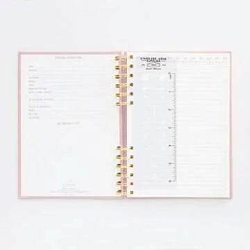 Show more Discover the perfect companion for your organizational needs with this stylish and functional notebook from Designworks Ink. Designed to facilitate your written thoughts, it features a classic split twin wire bound design packed with thoughtful details. The interior holds 192 lined pages, giving you ample space to pen your ideas, goals, or daily tasks. Not only is it aesthetically appealing with its vintage dusty pink cover adorned with gold accents, but it also includes essential tools such as a bullet key, conversion charts, and a ruler bookmark to enhance your planning experience.