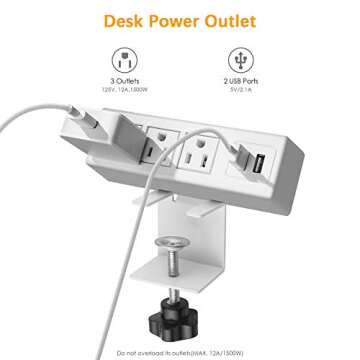 Desk Clamp Power Strip, Desktop Power Outlet with USB Ports and 3 AC Outlets