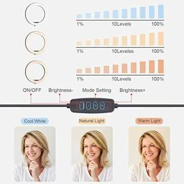 Desk LED Ring Light 10.2" with Stand & 2 Phone Holder, Dimmable Desktop Selfie Mini Halo Ring Light for Live Stream/Makeup/YouTube Video/Meetings, 3 Light Modes & 10 Brightness Level