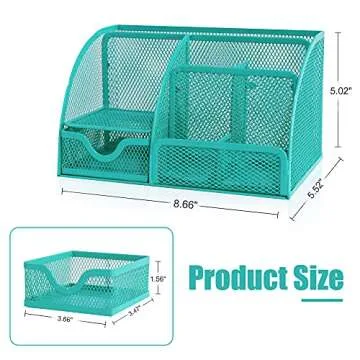 Show moreIntroducing the quintessential solution for your organizational needs: the Multi-Functional Mesh Desk Organizer. This product is designed with a sleek blue finish that effortlessly blends in with any workspace, be it at home, school, or in a professional office environment. Featuring a smart design that includes six spacious compartments and an additional drawer, this desk organizer is perfect for keeping all your essential office supplies neatly arranged and easily accessible. Say goodbye to clutter and hello to a more efficient workspace with this stylish accessory.