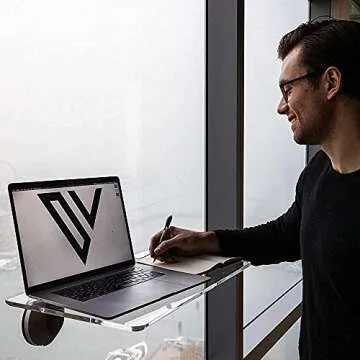 Show moreIntroducing the DeskView Premium Standing Desk - a revolutionary workspace solution thoughtfully designed for optimal functionality and style. Crafted with premium aerospace-grade components, this standout desk combines high-end materials with innovative technology to redefine your work experience. The DeskView is engineered in Chicago and features aerospace-grade aluminum brackets alongside patented suction discs that hold firmly, ensuring long-lasting stability without leaving unsightly marks. Weighing only 9 pounds, this desk is not only lightweight but also portable, allowing you to effortlessly create your ideal workstation anywhere, from a sunlit window to a cozy nook in your home. Within seconds, you can transform any tempered glass surface into a spacious workstation or window shelf, making your workday both efficient and visually appealing.