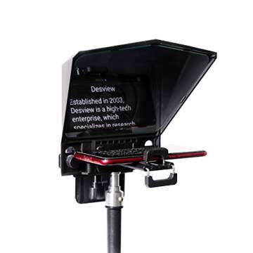Desview T2 Portable Teleprompter kit for Smartphone Tablet DSLR Camera, with Remote Control and 9 Sizes Lens Adapter Ring, Interview, Video Programs, Live Streaming, Presentation