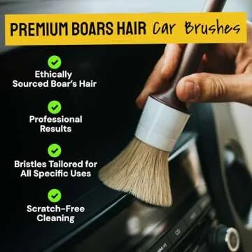 Crafted for precision, our three-piece detailing brush set is made from soft boar hair, ideal for accessing hard-to-reach areas. These brushes are specifically designed for delicate surfaces like dashboards, ensuring that dirt and grime are removed efficiently without any damage, preserving your vehicle's integrity.