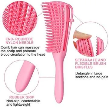 Show moreIntroducing the Detangling Brush for Curly Hair, specifically designed to cater to the diverse needs of American and African hair textures, ranging from 3a to 4c. This innovative brush effortlessly detangles even the kinkiest, waviest, and curliest hair without causing pain or discomfort. With its unique bristle design, this brush glides through wet, dry, or oiled hair, making your hair care routine smoother and more enjoyable. Experience the luxury of a pain-free scalp massage while maintaining the health and integrity of your locks.