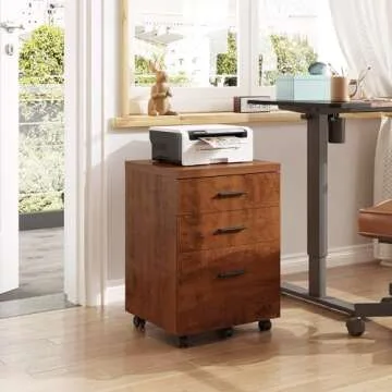 DEVAISE 3 Drawer File Cabinet for Home Office, Wood Under Desk Filing Cabinet, Rolling Printer Stand with Wheels, Walnut