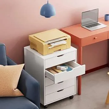 DEVAISE 5-Drawer Chest, Wood Storage file Cabinet with Wheels, White