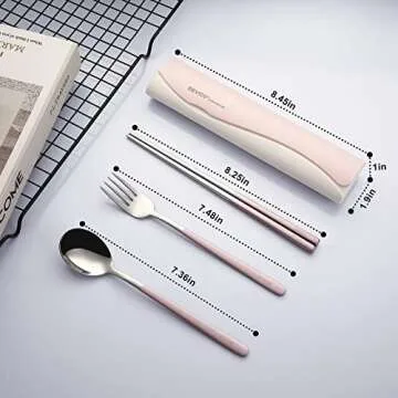 This travel utensil set comes complete with a spoon, fork, chopsticks, and a carefully designed case, perfect for a variety of scenarios. Whether you need these utensils for work, camping, or a picnic, you'll be equipped with everything you need for a delightful meal. The convenience of a compact shape allows you to easily carry it to school, the office, or your favorite restaurant!