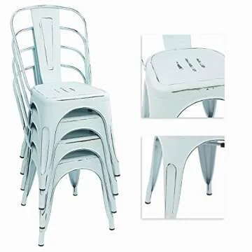 Devoko Metal Indoor-Outdoor Chairs Distressed Style Kitchen Dining Chairs Stackable Side Chairs with Back Set of 4 (Blue)