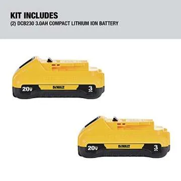 Show moreElevate your power tool performance with the DEWALT 20V MAX 3 Ah Lithium Ion Battery 2-Pack (DCB230-2). Engineered with advanced technology, these batteries deliver a remarkable 3.0 Ah capacity, ensuring long run times that keep you working without interruption. Ideal for both DIY enthusiasts and professional tradespeople, this dual pack is designed to boost your productivity on the job. The 3-LED fuel gauge system offers immediate feedback on the battery's charge status, providing you with the peace of mind that comes from knowing exactly when it's time to recharge. With no memory effect and virtually zero self-discharge, these batteries ensure maximum productivity with minimal downtime.
