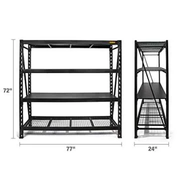 DEWALT 6-Foot Tall, 4 Shelf Steel Wire Deck Industrial Storage Rack, Adjustable for Custom Workshop/Garage Storage Solutions, Total Capacity: 10,000 lbs. (DXST10000BLK)