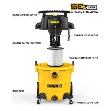 DEWALT 9 Gallon STEALTHSONIC Ultra Quiet Poly Shop Vacuum Wet/Dry, DXV09P-QTA Noise Reduction Vac for Shop, Heavy Duty Shop Vacuum for Jobsite/Workshop, Reduce Motor Noise, Yellow
