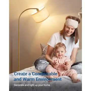 DEWENWILS Gold Arched Floor Lamps for Living Room, Boho Standing Arc Lamp with Adjustable Lampshade, Mid Century Modern Reading Light with Foot Switch for Bedroom, Home Office, Nursery
