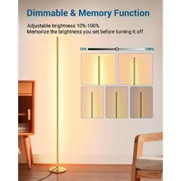 Show more The DEWENWILS LED Corner Floor Lamp is an exquisite addition to any modern home, perfectly blending functionality with aesthetic appeal. Standing at a sleek 57.5 inches, this minimalist dimmable slim light is not just a lamp; it's an elegant statement piece ideal for living rooms, bedrooms, or office spaces. Crafted from high-quality materials, the silver metal light pole offers a contemporary design that seamlessly fits various interior styles. Whether it’s for reading, working, or setting the mood, this lamp ensures a cozy ambiance that enhances your space.