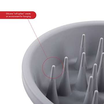 Show moreIntroduce your dog to a healthier, more enjoyable mealtime with the Dexas Slow Feeder Dog Bowl. Designed with a capacity of 6 cups, this innovative feeder not only promotes slower eating but also enhances digestion while keeping your dog's teeth and gums in optimal condition. Featuring innovative silicone "soft spikes", this bowl creates a fun and challenging eating environment that encourages your furry friend to savor every bite. The removable silicone bowl liner adds a layer of convenience, making cleanup effortless while promoting hygiene for your pet.