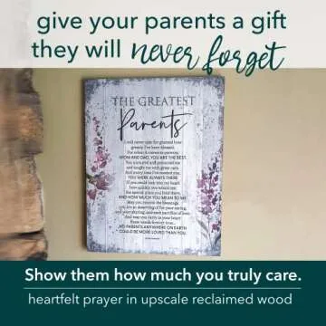 DEXSA Greatest Parents Wood Plaque - Made in the USA - 11.75 in x 15 in - Classy Vertical Frame Wall Hanging Decoration | Mom & Dad, you are the Best | Christian Family Religious Home Decor Saying