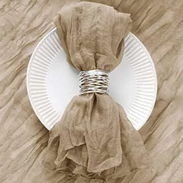 Show more Transform your table setting into a lavish display with the DeZerlor 50 Pack Nude Cheesecloth Napkins. Crafted from premium cotton gauze fabric, these napkins bring a touch of elegance and sophistication to any gathering, whether it’s a wedding, baby shower, or a delightful Easter brunch. Each napkin beautifully features a distinctive wrinkled texture, offering a rustic farmhouse vibe that’s stylish and chic. Size: Each napkin measures a generous 21"x21", allowing for versatile folding options.