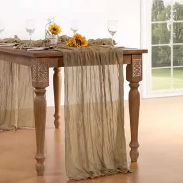DeZerlor Nude Cheesecloth Table Runner Boho Sheer Gauze Table Runner 120 Inches Long Spring Coffee Table Decorations for Nude Bridal Baby Shower Wedding Easter Tea Party Decor