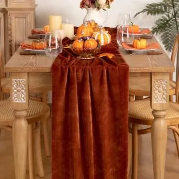 Show more Transform your dining experience with the DeZerlor Terracotta Velvet Table Runner, a stunning masterpiece designed for those who appreciate elegance and sophistication. Measuring 20 x 120 inches, this table runner is the ideal length for both 6ft and 8ft dinner tables, comfortably accommodating 8-10 guests. Crafted from premium soft velour fabric, this high-quality product offers a rich, luxurious texture that feels amazing to the touch and elevates your tabletop display to new heights.