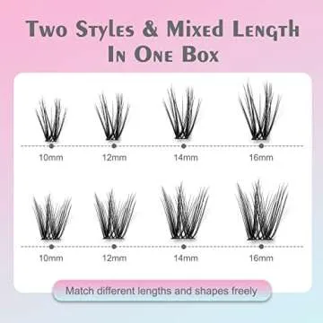 DF Cluster Lashes 144 Pcs D Curl Individual Lash Clusters 10-16mm Mixed DIY Lash Extensions Soft Volume Individual Lash Extensions Self-application DIY Lashes at Home - Rose 8