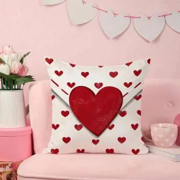 DFXSZ Valentine's Day Pillow Covers 18x18 Inch Set of 2 Big Red Hearts Small Red Hearts Decor Throw Pillow Covers Valentine's Day Cushion Case Decoration for Sofa Couch 53C