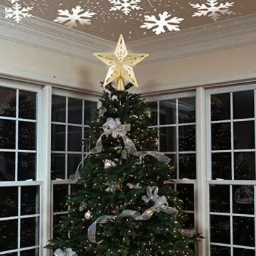DG-Direct Christmas Tree Topper Lighted Star [Gold], 3D Hollow Sparkling Star with Rotating Projector